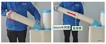 使用三合一接口后,即可搭配加長風(fēng)管進(jìn)行遠(yuǎn)距離集中送風(fēng)